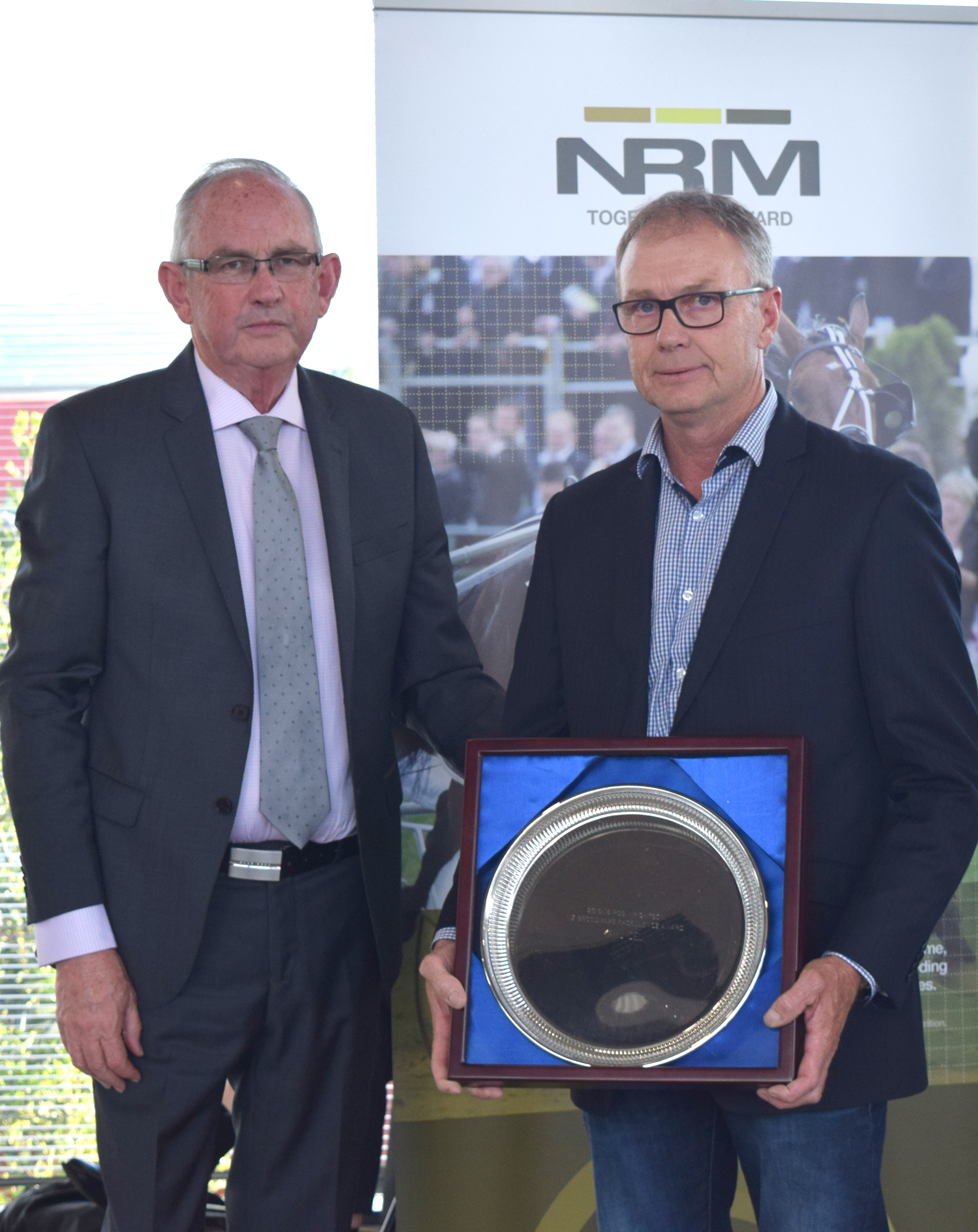 John Mooney presents Ben Smith with the Broodmare of Excellence Award for 2016.